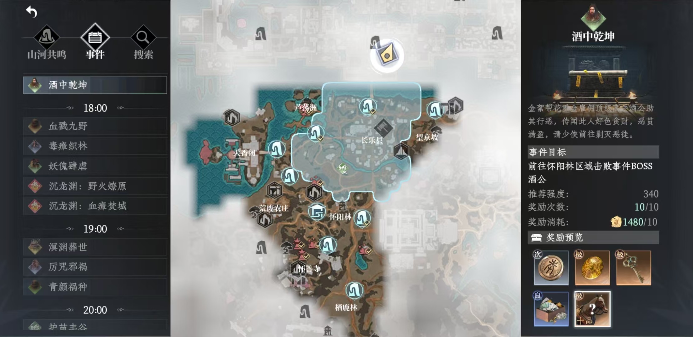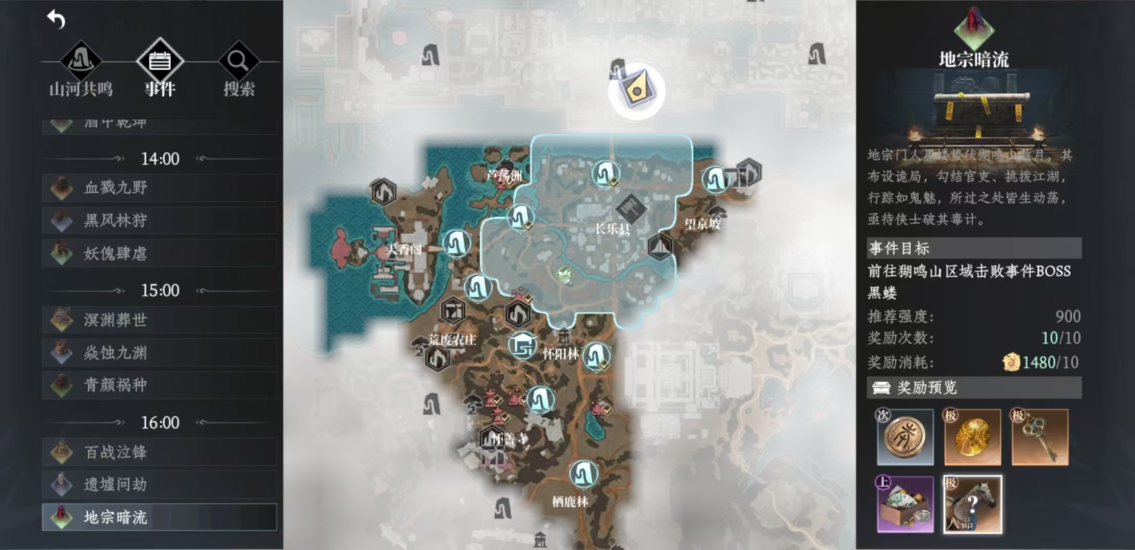 后續(xù)想要獲得更高品質(zhì)的坐騎,只能通過大地圖事件來得到。例如事件地宗暗流,可以掉落八品坐騎;事件遺墟問劫,掉落七品坐騎;事件百戰(zhàn)泣鋒,可以掉落七品坐騎。事件青顏禍種,可以掉落八品坐騎;事件炎蝕九淵,掉落七品坐騎;事件妖傀肆虐,掉落八品坐騎等。因?yàn)楹芏嗍录紩袈渥T,所以小編這里不再一一介紹,大家只需要打開小地圖,然后選擇其中的事件,這里就可以看到當(dāng)前所有的事件類型。包括這些事件何時觸發(fā),觸發(fā)的地點(diǎn)以及掉落的獎勵等,都會很清楚地介紹出來,只需要根據(jù)自己的實(shí)際情況和獎勵需求去戰(zhàn)斗就可以了。