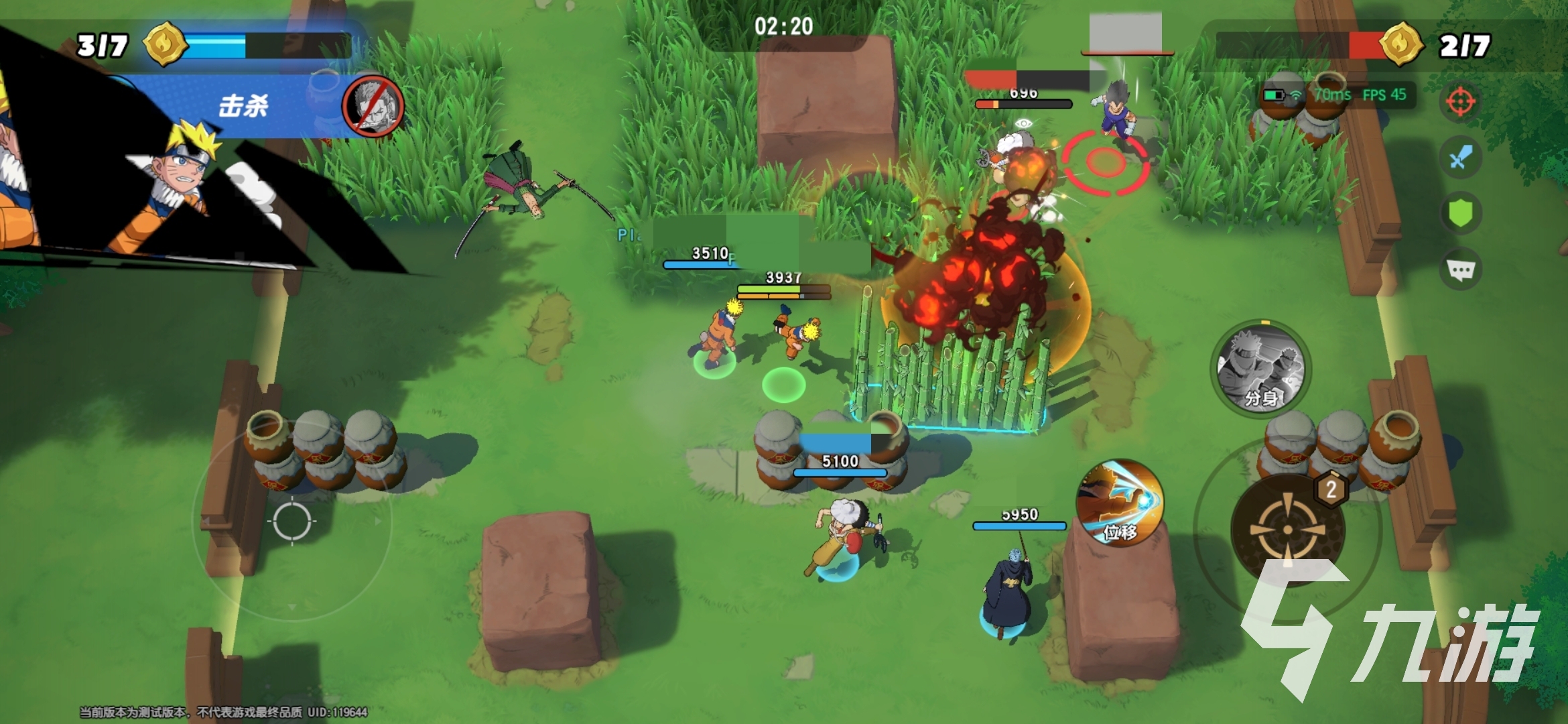 鳴人大招的“影分身”能召喚的一個(gè)分身會(huì)繼承部分鳴人的屬性,自動(dòng)攻擊附近敵人,增加戰(zhàn)場(chǎng)上的火力覆蓋。分身不僅能牽制敵人,還能幫助鳴人分擔(dān)壓力,讓他有更多時(shí)間和空間釋放主要技能,提高整體生存和輸出效率。