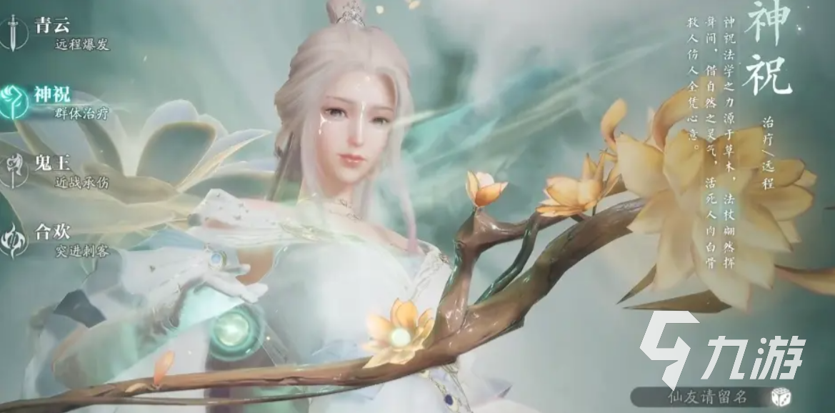 神祝是輔助類(lèi)的,能靠著強(qiáng)大的治療輔助能力來(lái)提升隊(duì)友們的續(xù)航,使得隊(duì)伍更加具有生存力,他的普攻會(huì)對(duì)敵人造成仙法傷害,每3次普攻會(huì)增加輸出并回復(fù)靈力值,他的“花舞”能對(duì)周?chē)鷶橙嗽斐上煞ㄝ敵霾⑺麄兘o擊飛,他的“花落”會(huì)給一位隊(duì)友回復(fù)氣血,并自動(dòng)讓范圍內(nèi)生命值最低的隊(duì)友也得到回復(fù),他的“竹影界”會(huì)展開(kāi)一個(gè)向前方移動(dòng)的竹墻,竹墻在不斷移動(dòng)的情況下會(huì)將對(duì)手直接撞飛,在墻體存在期間能幫助抵達(dá)敵人與飛行物,他的蓬萊在自身有60靈力值的情況下才能使用,釋放時(shí)會(huì)解除掉身上的控制,并復(fù)活范圍內(nèi)所有重傷隊(duì)友幫助他們回復(fù)氣血。