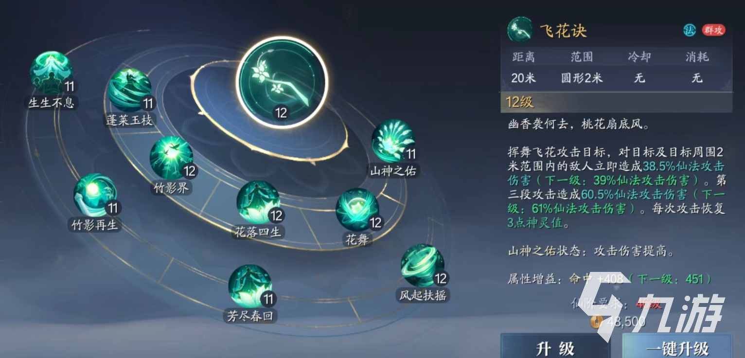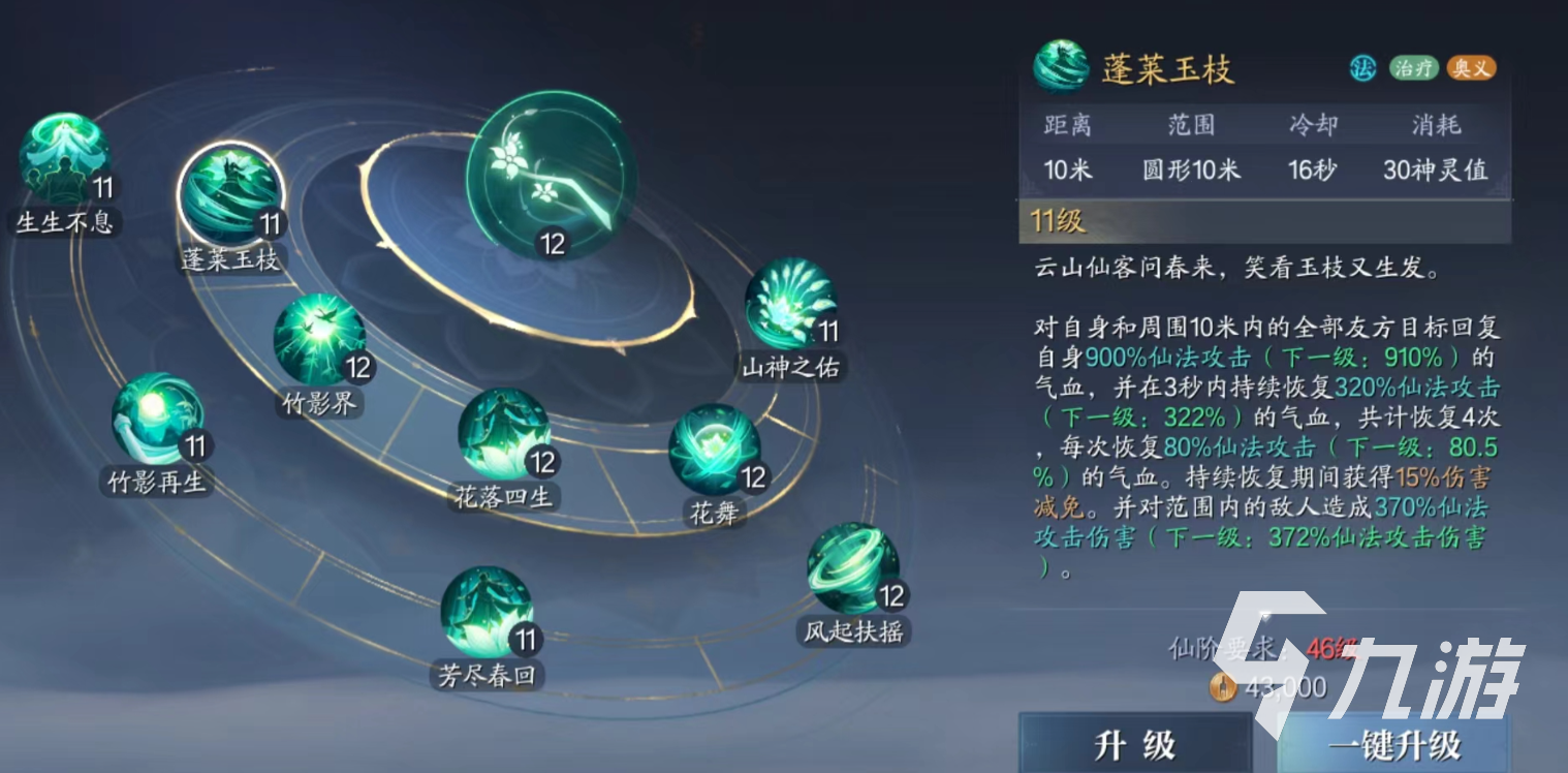 他的“花舞”會對周圍3米內(nèi)的敵人造成仙法傷害以及擊飛,在強(qiáng)化中會被替換成“風(fēng)起扶搖”向著前方釋放出龍卷風(fēng),對路上解除到的敵人們造成傷害擊飛,他的花落會給選定的隊(duì)友恢復(fù)氣血,并讓范圍內(nèi)氣血最低的隊(duì)友也獲得回復(fù)。