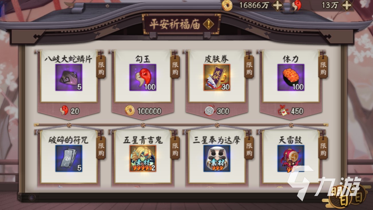 2.平安祈福廟活動(dòng),每天0點(diǎn)刷新商品,且商品只能購(gòu)買(mǎi)一次,運(yùn)氣好的玩家可以刷到6星美食卡、藍(lán)票、100勾玉等獎(jiǎng)勵(lì)。