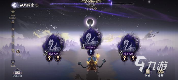 而戰(zhàn)場(chǎng)探索玩法大家需要駕駛朧車進(jìn)行探索,游戲內(nèi)探索推進(jìn)小伙伴們的罪惡值會(huì)進(jìn)行提升,當(dāng)罪惡值滿了之后大家會(huì)獲得各種的debuff效果。不過大家在探索的時(shí)候也會(huì)遇到各種隨機(jī)事件,這個(gè)有點(diǎn)類似于肉鴿類型的玩法。
