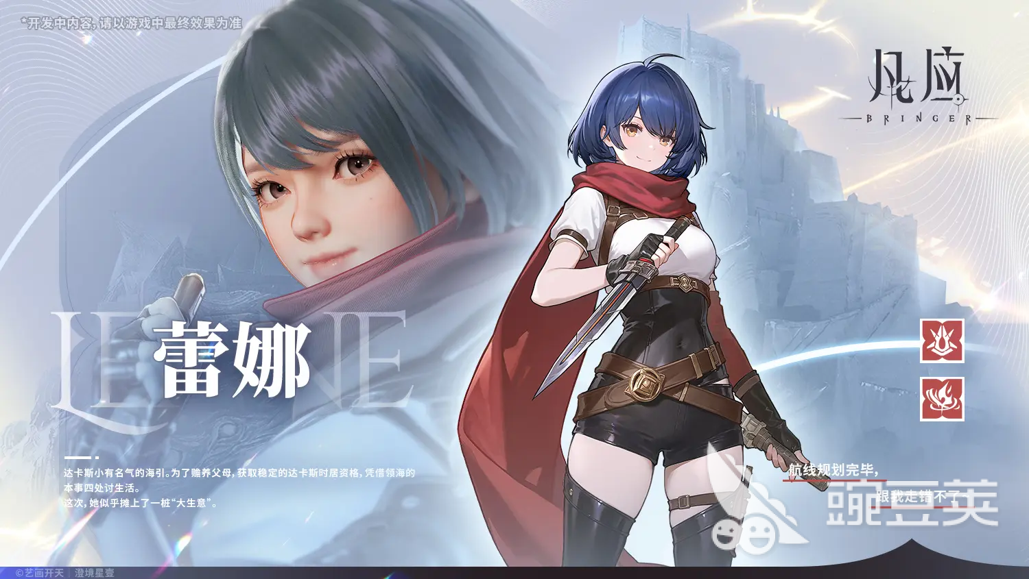 蕾娜是傀人年少時期的朋友,共同經(jīng)歷過生死,當(dāng)傀人成為帝國知影之后,蕾娜就以影侍的身份始終陪伴在身邊,隨后和化為海履者的傀人一起穿梭于圣宮和萬城國的紛爭之中,尋找闊土,同時揭開了預(yù)言背后的真相以及謎題。