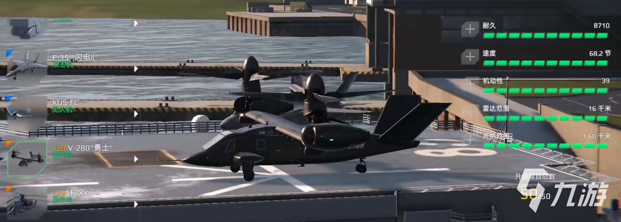 SV-22還搭配了魚雷,每枚傷害達到2萬,一共能夠輸出6輪,缺點是裝填時間比較長,需要18秒才能再次發(fā)射,但出色的傷害能力已經(jīng)足以使其傲視群雄。V-280作為三級直升機,可以當(dāng)成是二級的強化版,武器更加豐富,擁有機炮、導(dǎo)彈和魚雷,無論是在防空、反艦還是反潛等方面,都有著出色的功能。能夠有效應(yīng)對對方的飛機,對敵方艦艇也有一定的攻擊能力,是海戰(zhàn)過程中的多面手。