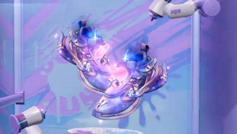 【變量】鞋盒中還附帶了【虹彩】材質(zhì)與賽博主題圖案,當(dāng)這些元素被完整涂裝在金色品質(zhì)球鞋的所有區(qū)域后,就能解鎖【源代碼】特殊印花組合。兼具科技感與潮流感,也與七夕活動(dòng)的浪漫氣息形成了別樣的呼應(yīng)。