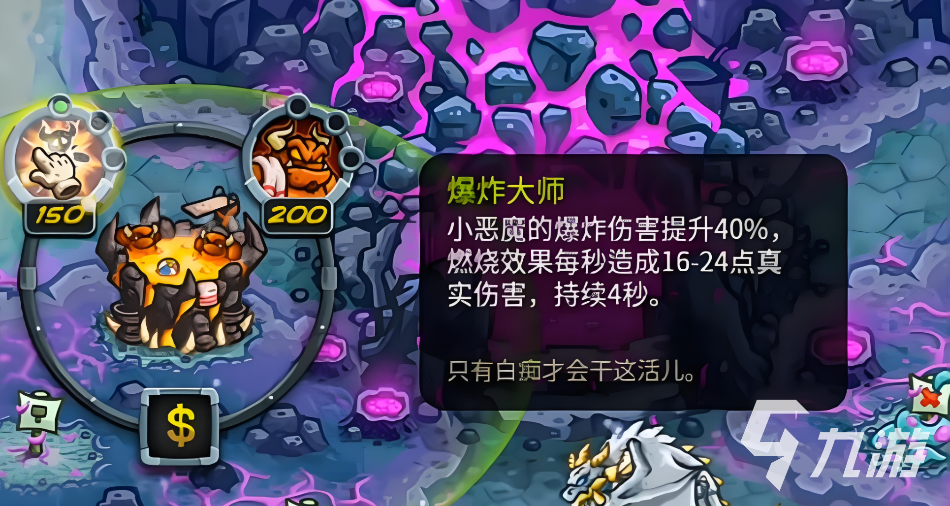玩家在運(yùn)用惡魔熔坑的時候,借助召喚小惡魔跟大惡魔,這樣的話玩家就能夠有效地拖延敵人的進(jìn)度,而其他的防御塔就能夠快速的輸出,特別是玩家在戰(zhàn)斗時,面對狹窄通道以及敵人這時候相對密集,頻繁的使用惡魔熔坑之后,可以讓灼燒跟爆炸傷害最大化。畢竟小惡魔的灼燒跟大惡魔的自曝,它能夠同時擊敗多個敵人,再加上有真實(shí)傷害的加入,哪怕敵人面對的是高護(hù)甲的情況下,它的表現(xiàn)力度也是比較強(qiáng)悍的。