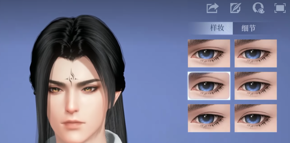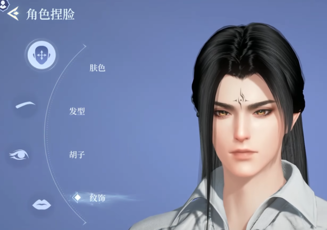 開始決定捏臉之后,就會(huì)進(jìn)入臉部的捏臉環(huán)節(jié)。這時(shí)就可以先調(diào)節(jié)臉上的紋飾,也就是一個(gè)類似于紋理的圖標(biāo)。不過選完之后就可開始選擇個(gè)人的眼型了,喜歡嫵媚一點(diǎn)的朋友就可以直接選擇丹鳳眼,若是其他眼型同樣可安心切換就行。