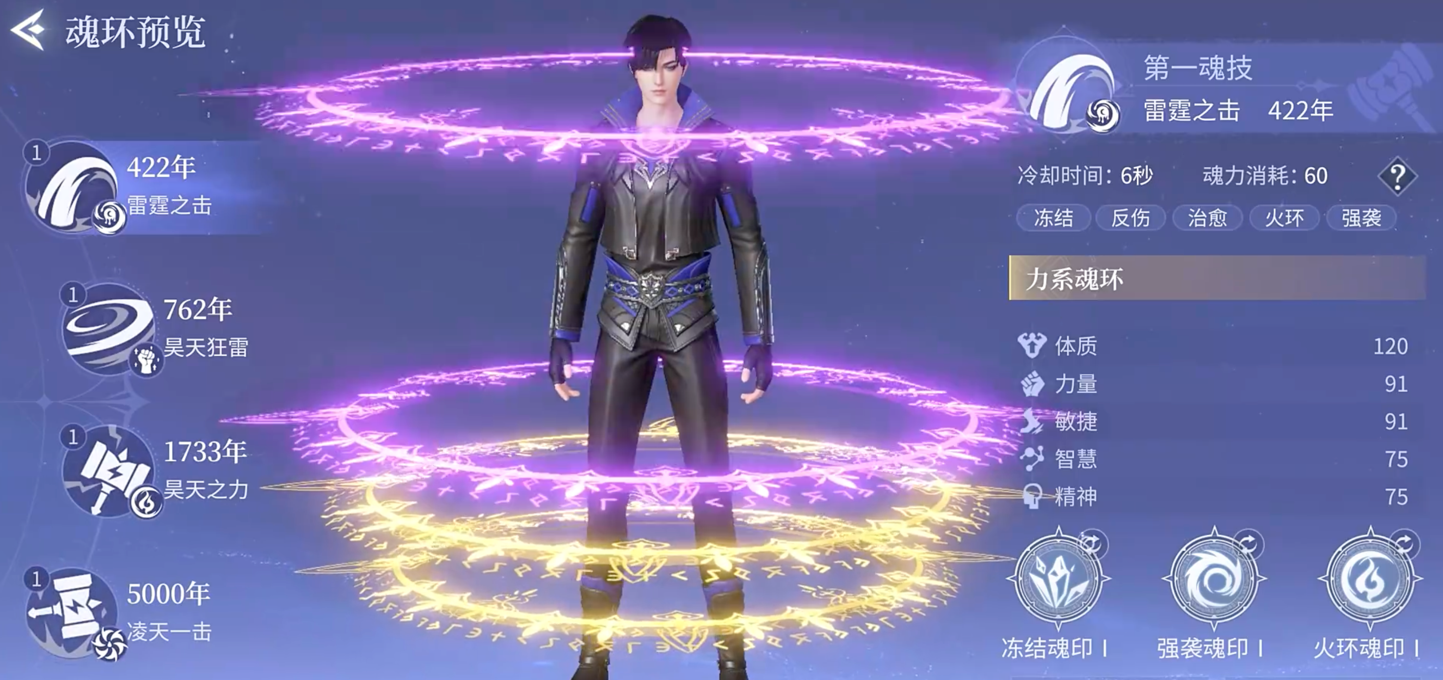 其中聚靈煉魂盞可以通過(guò)鉆石購(gòu)買(mǎi)或參與活動(dòng)獲得,魂環(huán)突破結(jié)晶主要在職業(yè)副本中掉落,而引魂花露則需要用附魂雨露合成而來(lái),建議前往“奇花秘境·第三關(guān)”刷材料,這一關(guān)效率高、難度也相對(duì)較低。當(dāng)材料準(zhǔn)備齊全后,前往工坊臺(tái)進(jìn)行合成與升階,將第五魂環(huán)從藍(lán)色+1品質(zhì)進(jìn)一步提升到紫色品質(zhì),即可全面解鎖第五魂技的完整效果。