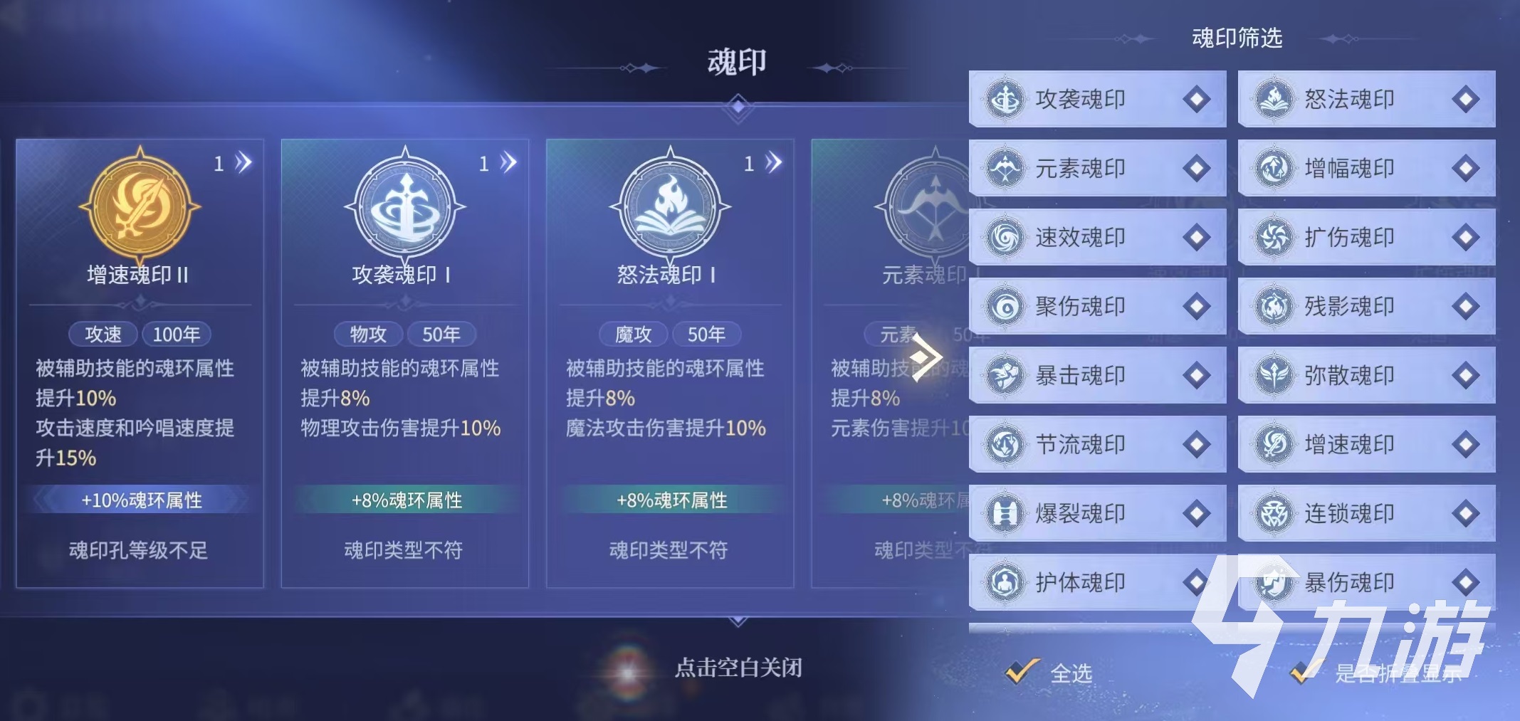 在魂印選擇方面,前期挑選可以增強(qiáng)基礎(chǔ)控制效果的魂印,讓控制更加穩(wěn)定,中期挑選一些能夠強(qiáng)化持續(xù)傷害的,這樣能有效提高輸出,后期優(yōu)先選擇可大幅度提升武魂整體實(shí)力的魂印。小編的建議是前期可以選擇纏繞強(qiáng)化印和韌性增幅印,中期可以選擇寄生增傷印或者是元素增幅印,后期可以選擇連鎖魂印。