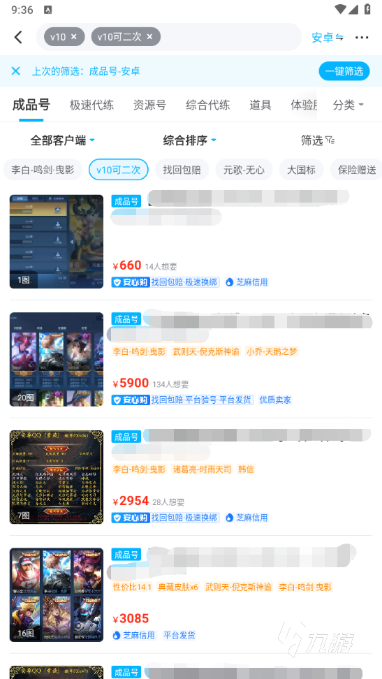 上圖就是現(xiàn)在v10的行情,可以看到價(jià)格都是四位數(shù)起步,當(dāng)然,如果您的賬號沒法二次,價(jià)值就會低很多,畢竟大多數(shù)的賬號買家,都更中意能夠二次實(shí)名的賬號。