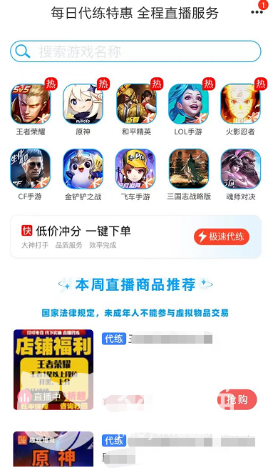 1、獨(dú)特的代練專(zhuān)區(qū)當(dāng)中,不僅可以幫助用戶們找到合適的代練來(lái)進(jìn)行游戲,豐富的代練優(yōu)惠活動(dòng)也將不定期為玩家們提供,大家可以根據(jù)自己的需求去了解這些活動(dòng),以最優(yōu)惠的代練價(jià)格來(lái)提升自己的游戲?qū)嵙?。?dāng)然,代練專(zhuān)區(qū)也開(kāi)通了各大游戲的交易專(zhuān)區(qū),玩家們可以通過(guò)搜索功能來(lái)進(jìn)行查找。