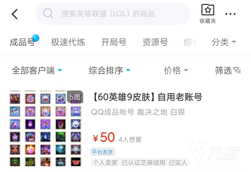 LOL游戲賬號專屬交易板塊