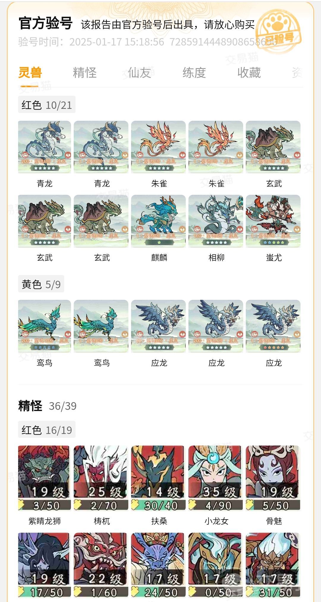 所謂交易員在進(jìn)行截圖驗(yàn)證之后都會(huì)針對(duì)賬號(hào)所出具一項(xiàng)報(bào)告,針對(duì)尋道大千這款作品就會(huì)有靈獸、精怪、仙友以及練度,收藏資產(chǎn)等等相關(guān)縮略圖信息,即使不愿意看繁瑣的文字介紹也能夠快速的鎖定是否有自己想要的東西,從而更快的判斷出賬號(hào)的價(jià)格。這種報(bào)告不僅對(duì)買家來說可信度高,而且還會(huì)幫賣家提升曝光度以及商品在同價(jià)格區(qū)間的排名。