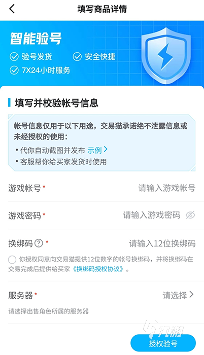 第二步,填寫賬號基礎(chǔ)信息。在特色服務(wù)界面中,玩家填寫游戲賬號、密碼、換綁碼、服務(wù)器等詳細(xì)信息。