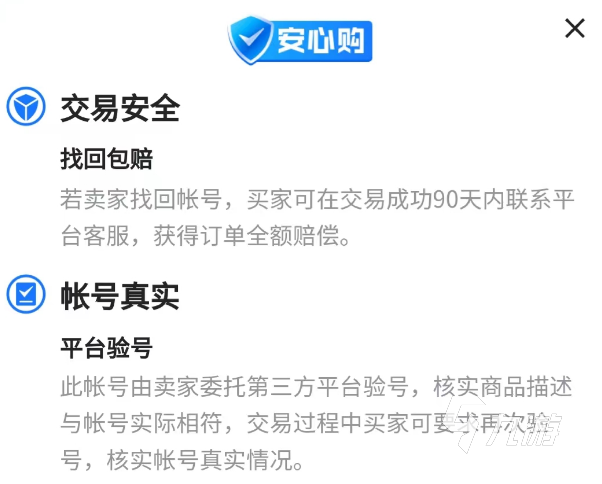 交易貓對待安全問題設(shè)定了很多防護措施,其中最為直接的就是安心購保險,細心的同學(xué)可能有發(fā)現(xiàn),交易貓部分apex商品都是帶有“安心購”圖標,有這類圖標就代表買家可享受免費的找回包賠政策,只要是在九十天內(nèi)賬號被找回,買家就有權(quán)利通過安心購的保險政策來索賠購號款項。