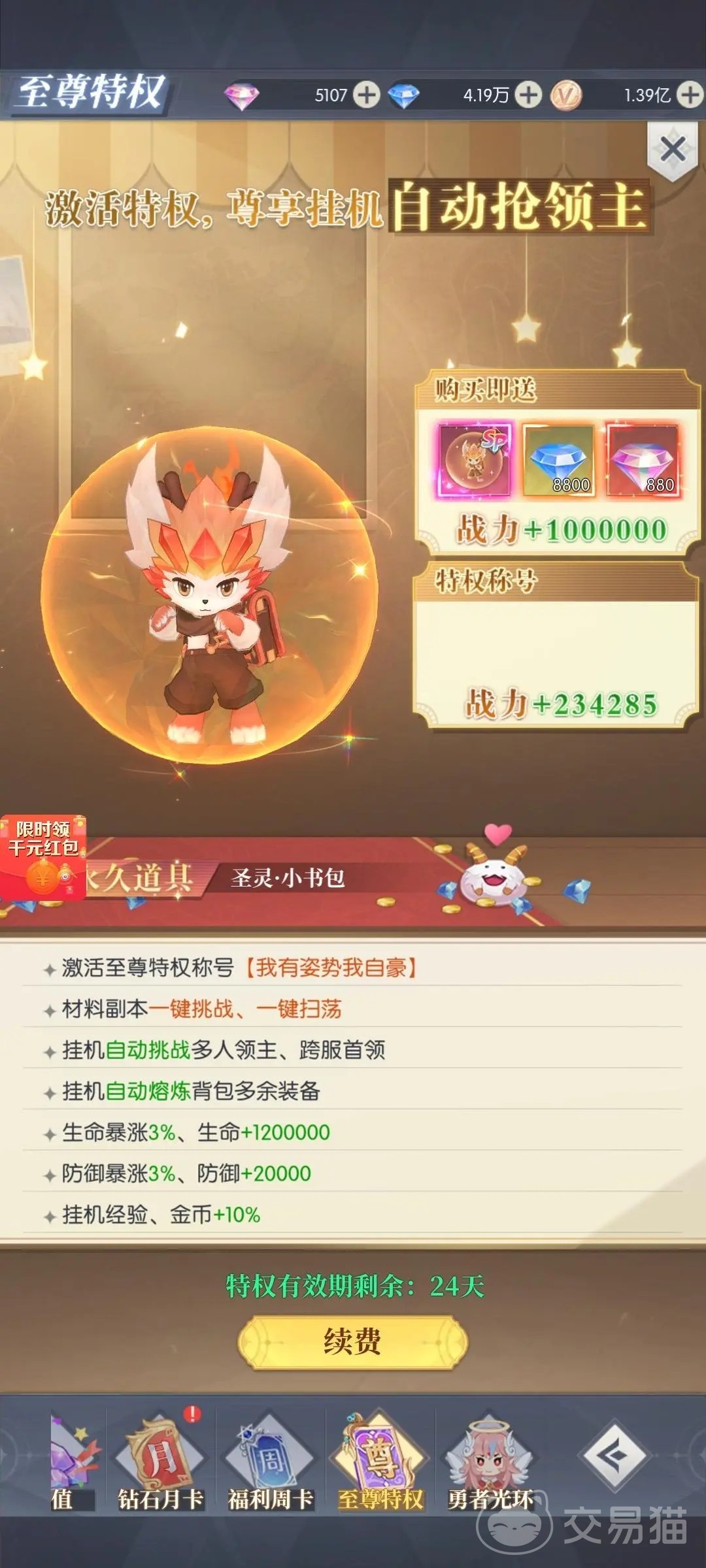 選擇交易貓進行云上大陸賬號交易,您將享受到安全、便捷、可靠的服務。我們致力于成為您值得信賴的游戲交易平臺,為您的游戲之路保駕護航?,F(xiàn)在就來交易貓選購您的云上大陸賬號交易吧!讓我們一起開啟精彩的冒險之旅!