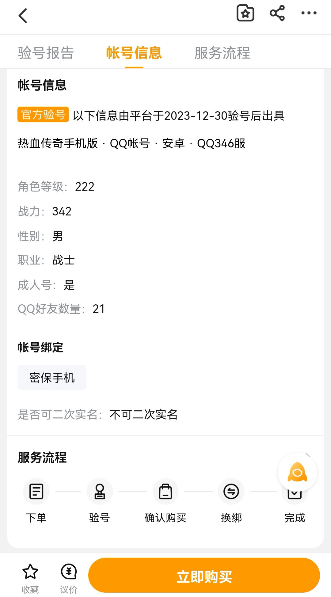 而且在瀏覽詳細(xì)信息的時(shí)候要注意盡量選擇平臺(tái)發(fā)貨的購(gòu)買,相比較而言更可靠,在你付款之后交易貓平臺(tái)會(huì)提供專業(yè)的認(rèn)證報(bào)告,在你確定要購(gòu)買以后平臺(tái)會(huì)組織賣家與買家進(jìn)行在線換綁,這樣就避免了線下交易出現(xiàn)的各種問(wèn)題,交易員也是24小時(shí)在線為大家解疑答惑提供服務(wù)的,官方專業(yè)的驗(yàn)號(hào)認(rèn)證能夠讓大家更信任賬號(hào)的安全以及購(gòu)買賬號(hào)的保障。