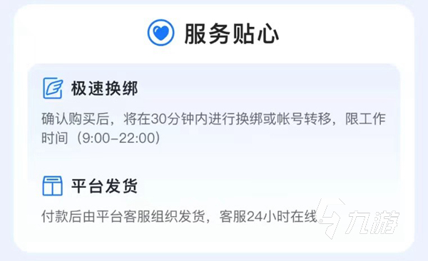 所以向各位小伙伴推薦這個平臺也是因為有看到了估價這個便利服務(wù),并且各位買家若是不放心還可以進行二次申請讓平臺估價,來對比一下價格是否具有差別,驗證自己所買的賬號是否物有所值,大大降低了被惡意賣家欺騙的幾率,簡便了買賣雙方的溝通模式,也防止許多惡意交易,損失我們各位買家的時間和金錢的問題。而且還可以迅速收貨半個小時即可完成換綁,賬號轉(zhuǎn)移服務(wù)。