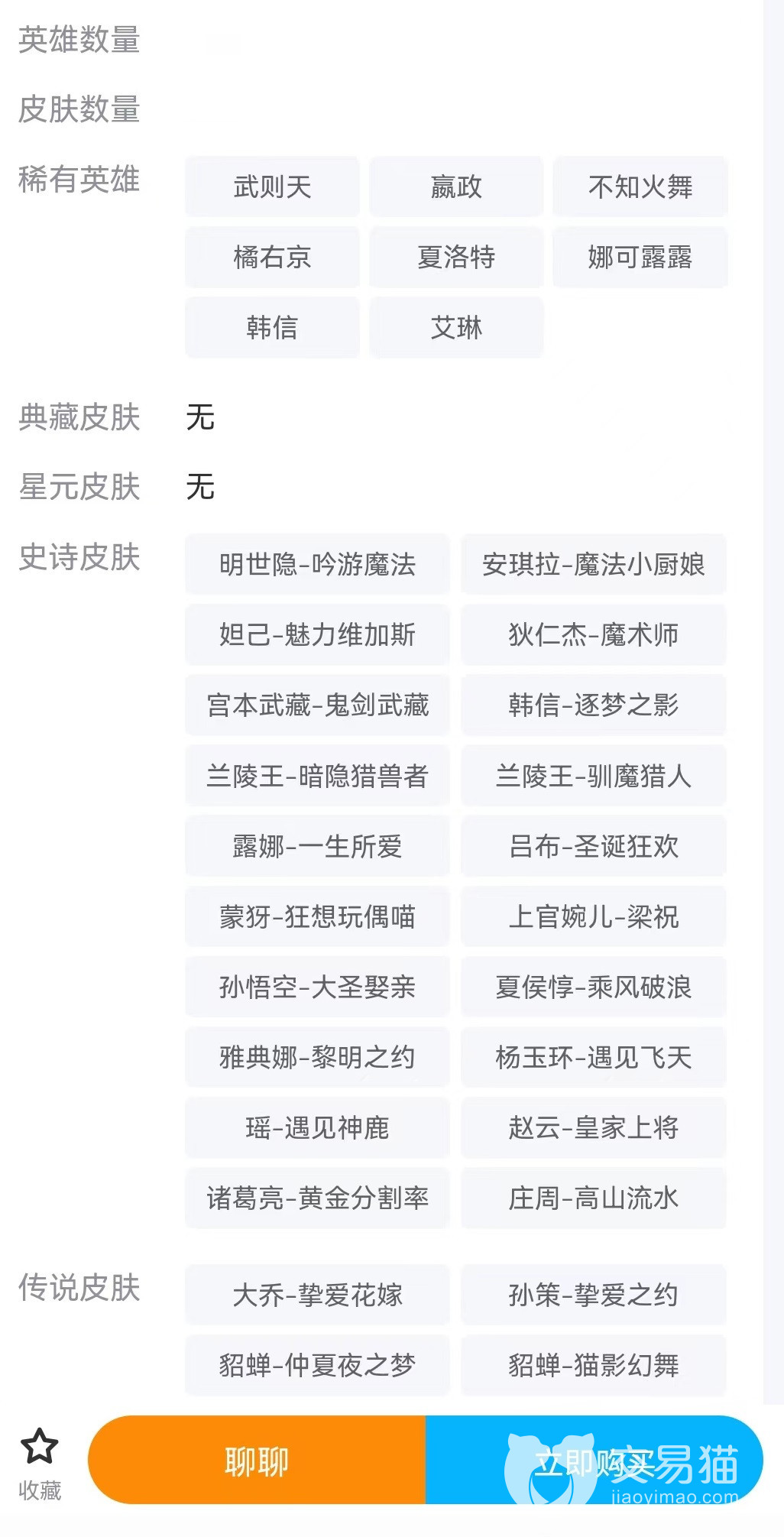 游戲賬號畢竟是一件比較特殊的商品,而交易貓就通過不同的模板將游戲賬號中最有價值和最精髓的部分展現(xiàn)了出來。例如賬號中擁有多少珍稀的皮膚、多少限量版的槍械、多少稀有角色等,這些信息就可以直接估算出賬號的價值,和價格一比對就能夠看出性價比。