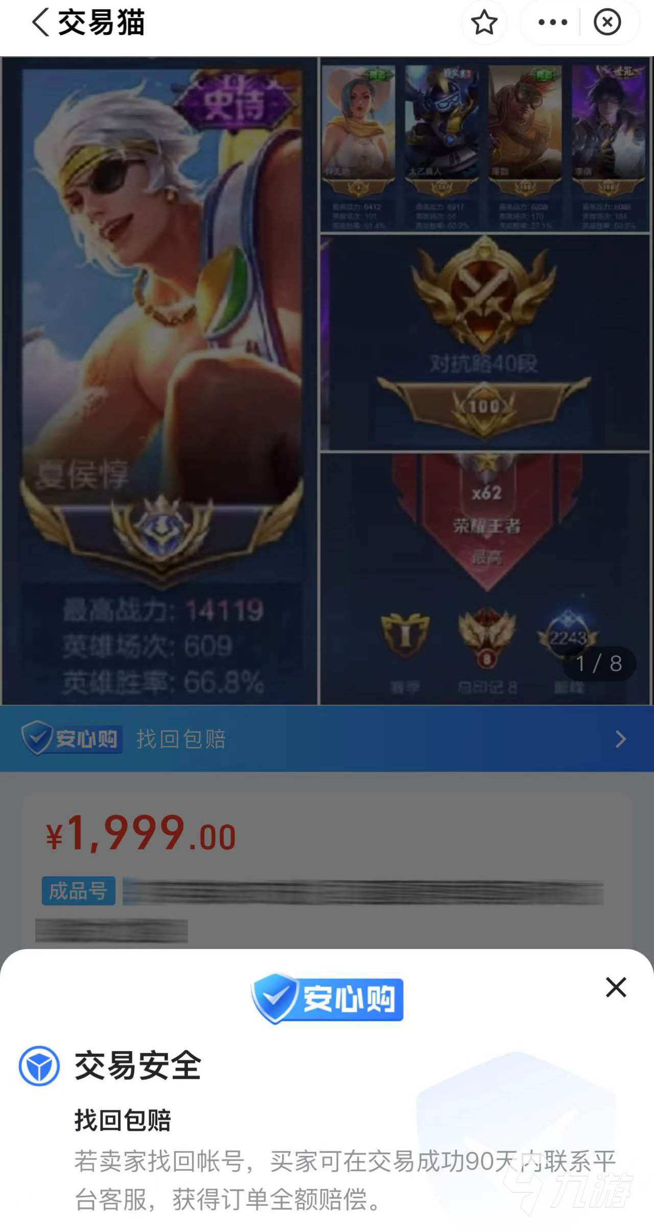 有些賣家如果信用度很高或者成交率高的話,是可以成為優(yōu)質(zhì)賣家的,優(yōu)質(zhì)賣家也可以為買家提供安心購服務(wù),當(dāng)然這種服務(wù)為部分商品所有。你如果買的王者國服號有問題的話,就可以獲得賠付。這樣就能讓你放心購買賬號,不擔(dān)心找回。