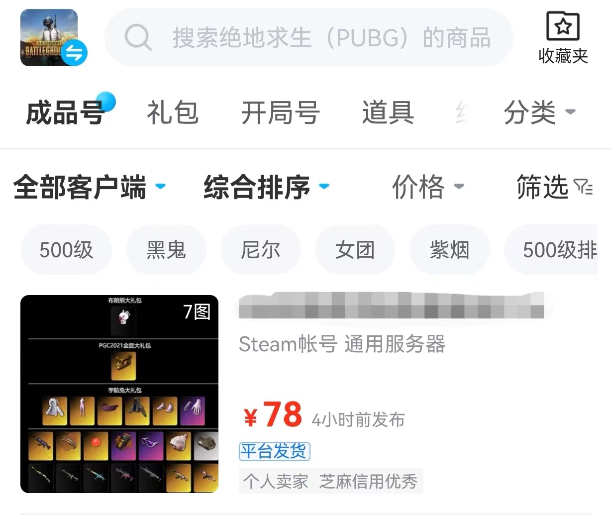 絕地求生中開箱需要消耗GB點,換算成金額一個箱子就是14,如果概率高的話這個價格還能接受,不過出貨的可能性讓玩家都感到失望,因此想要特殊飾品的小伙伴可以通過買號來實現(xiàn),這樣不僅不用看運氣,價格上也更劃算,原先號主的所有飾品皮膚都可以到手,也包含這個賬號的所有權(quán)。適合pubg飾品賬號交易的平臺有交易貓,也是本期內(nèi)容的主角。