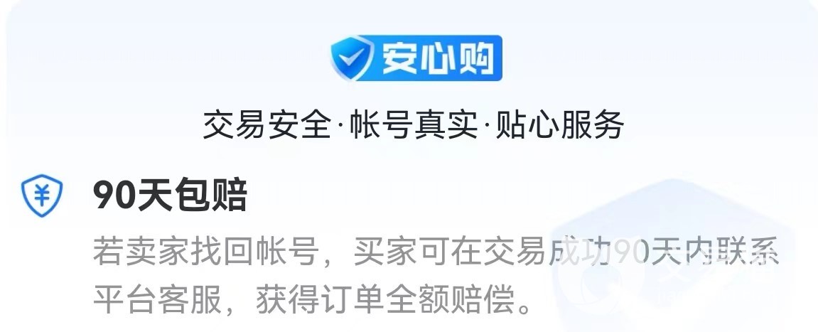 挑選游戲賬號時小編的建議是選參加保險的,這里說到的保險是安心購,交易貓平臺內(nèi)獨有的一項服務(wù),買家有了這項售后在就不用擔(dān)心找回問題,如果當(dāng)真有這類問題發(fā)生,平臺也會直接上手處理,買家還能拿到一筆可觀的賠償金,因此現(xiàn)在很多用戶買號都會優(yōu)先考慮這項服務(wù)。