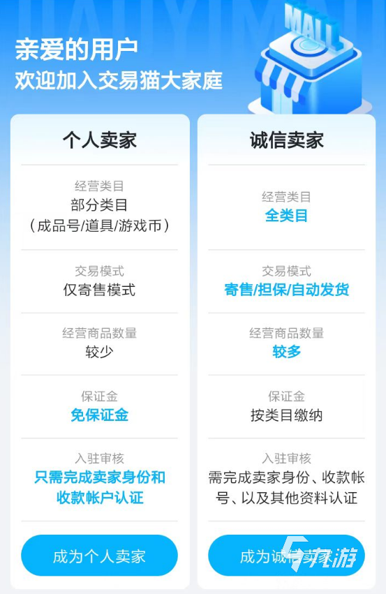 1、免費申請開通的個人賣家身份,是每一個打算出售賬號的玩家所必須獲取的身份,平臺當中開啟了簡單的認證流程,通過之后玩家們就能夠自由發(fā)布自己的游戲商品讓其他人看見。同時,個人賣家也有個很大的優(yōu)勢,就在于無需交納保證金。