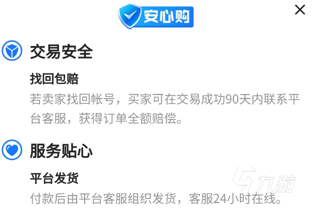 極品賬號的價格通常都會高一些,像貴九賬號基本維持在五千上下,在購買這種號時帶有保險就很關(guān)鍵啦,交易貓為了能讓買家交易進(jìn)行地更加放心,特意對部分商品提供了安心購的服務(wù),有了安心購之后就可以在九十天內(nèi)享受找回包賠的服務(wù),也算是對買家提供了一層保障。