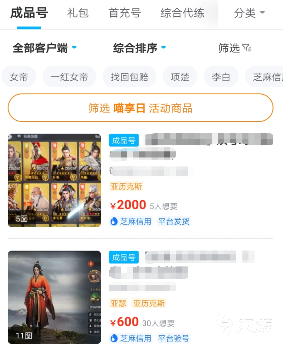 交易貓上的優(yōu)惠活動是非常多的,不定期就會舉辦一些活動,讓小伙伴可以領(lǐng)到滿減優(yōu)惠券,或者是準(zhǔn)備一些特價賬號提供給大家購買。最近正在舉辦的喵享日就是不錯的活動,大家趁著活動期間下單購買賬號,可以享受高額優(yōu)惠券補貼,能省不少錢呢。