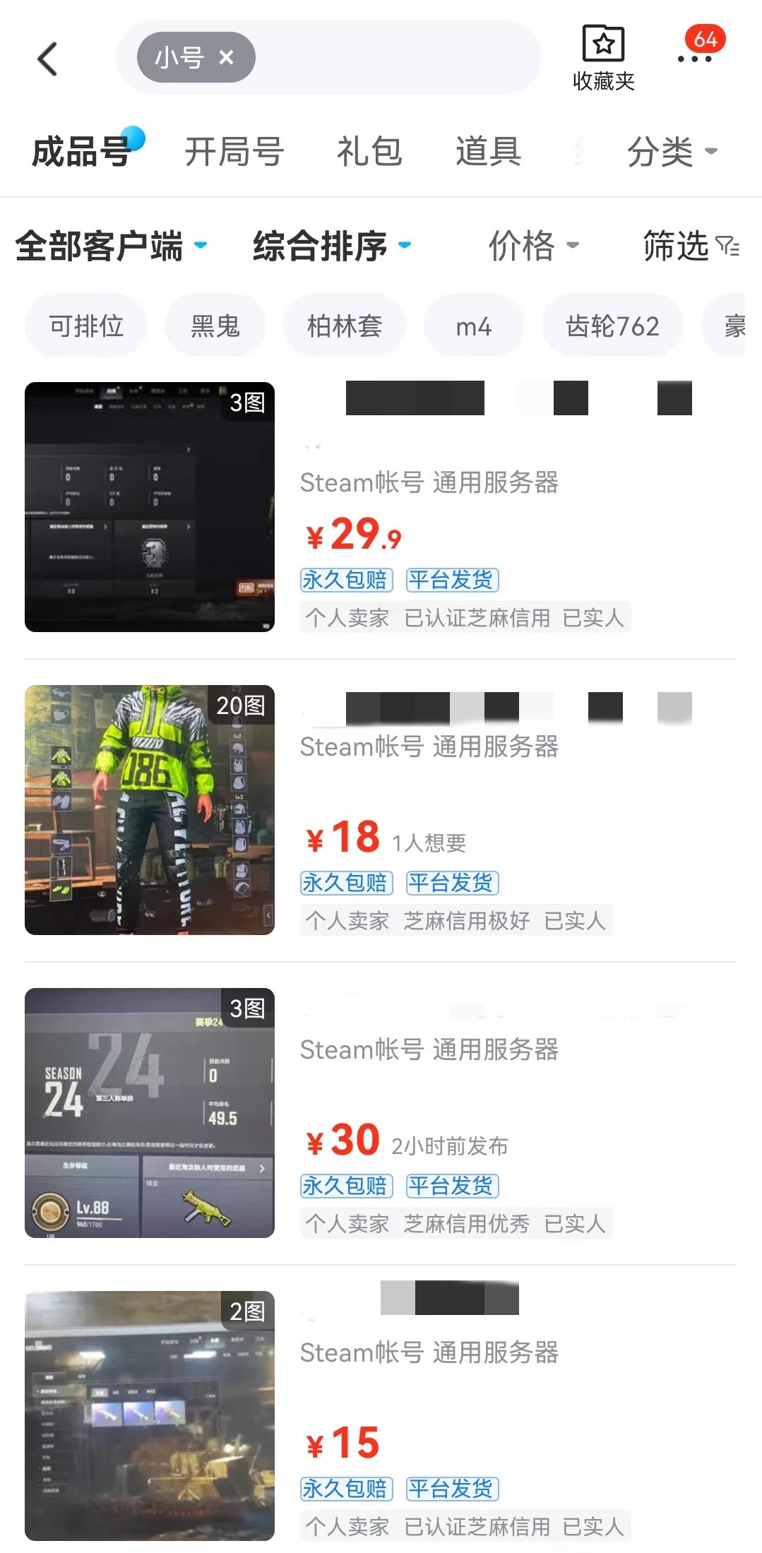 這款游戲中很多可搜集內(nèi)容改變的都是外觀和其他一些用于展現(xiàn)個(gè)性道具,在戰(zhàn)斗過(guò)程中主要依靠的還是玩家手中槍械以及技術(shù)和戰(zhàn)術(shù)。所以即使是小號(hào),也能輕松加入到對(duì)局中展現(xiàn)自己實(shí)力,無(wú)論是新加入玩家想要隨便買個(gè)號(hào)去體驗(yàn)下,或者是有其他目購(gòu)買小號(hào),都可以去交易貓游戲賬號(hào)交易平臺(tái)進(jìn)行操作。這里有非常豐富商品資源,在價(jià)格方面也能做到優(yōu)惠。