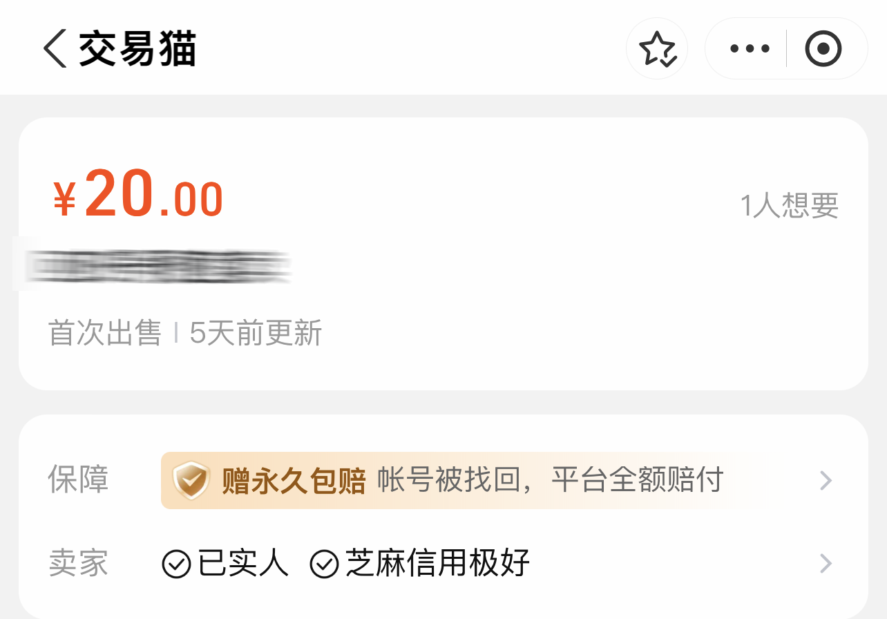 有一些商家第一次在交易貓里賣輻射避難所賬號,難免擔心自己信譽積累不足,賣不出去東西。好在交易貓可同步上傳賣家的芝麻信用分,這樣買家們亦可查看它們的信用度,以此來判斷該商品夠不夠安全,然后即可促進交易達成。