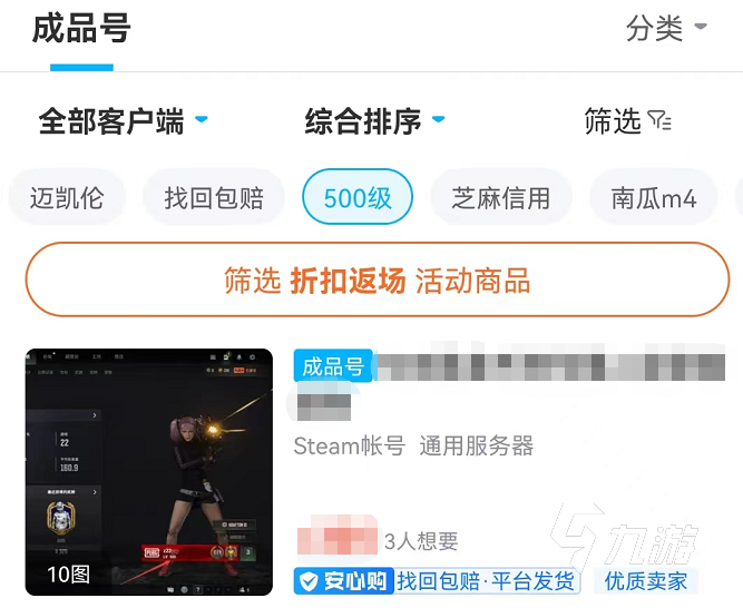 而且想要了解賬號(hào)的價(jià)值,玩家們只需要快速找到自己想要購買的商品,在首頁搜索絕地求生,進(jìn)入專區(qū)之后篩選滿級(jí)號(hào),能看到不同玩家的定價(jià),我們可以根據(jù)這些定價(jià)來進(jìn)行一個(gè)參考。
