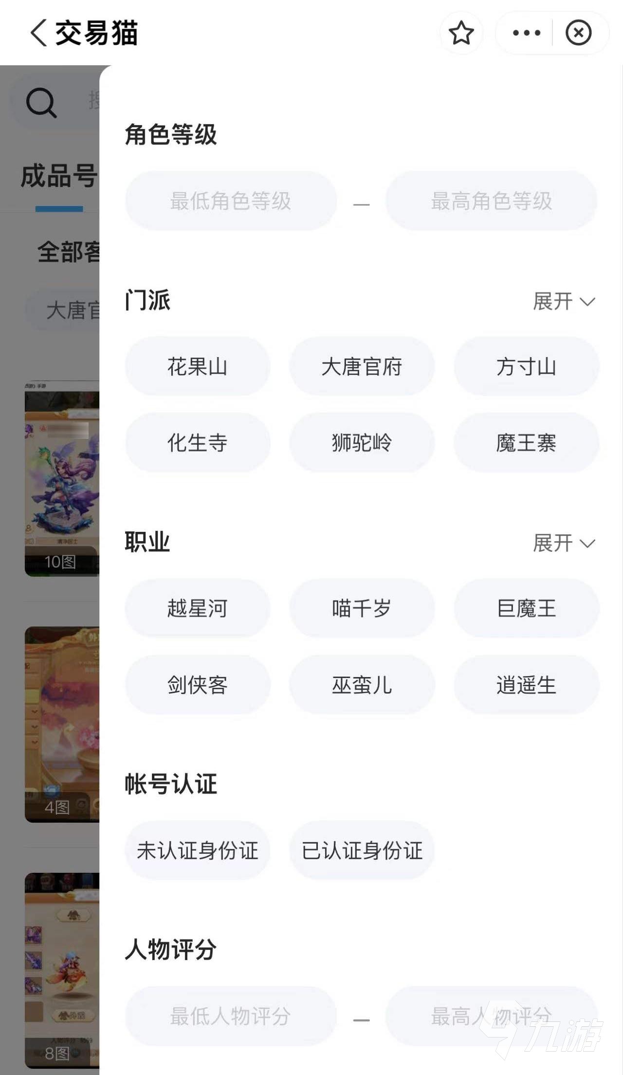 畢竟不是每一個號的角色以及門派都是一樣的,但是如果要自己仔細一個個看的話,那也太費力了。在交易貓上擁有著夢幻西游的專區(qū),里面的篩選類目更加成熟、豐富。你可以勾選自己想要的門派或者角色,就可以獲取相關商品的信息。之后再點擊進去,看一下里面的內容是否是你需要的,最后再根據自己的經濟預算判斷是否要購入即可,讓你的需求空缺成功得到填補。