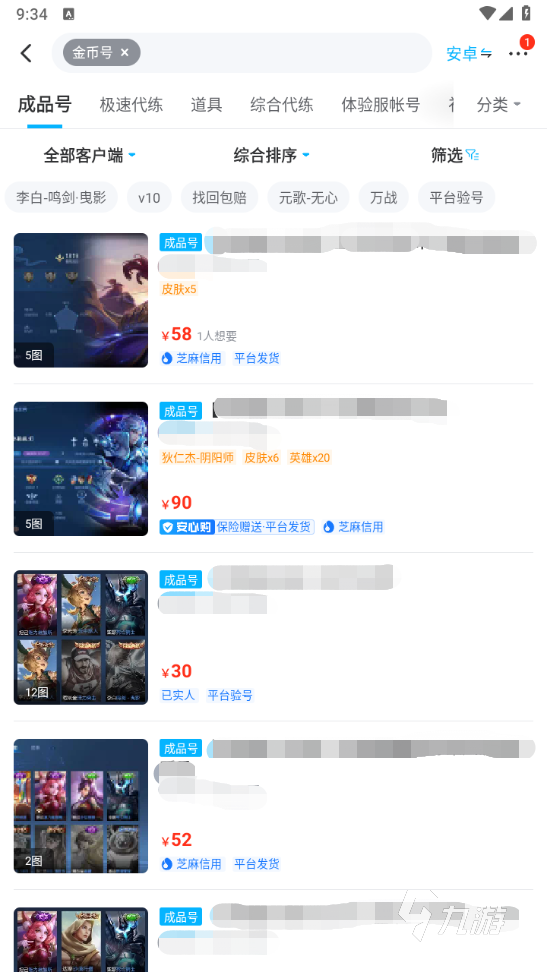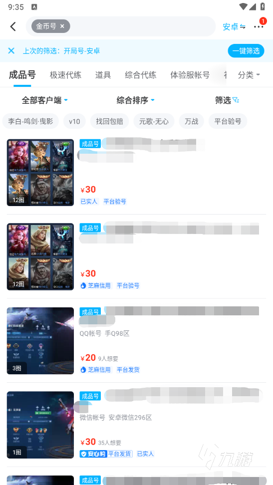 以下是目前平臺(tái)里金幣號的行情,可以看到價(jià)格方面都是幾十塊,還是非常親民的。