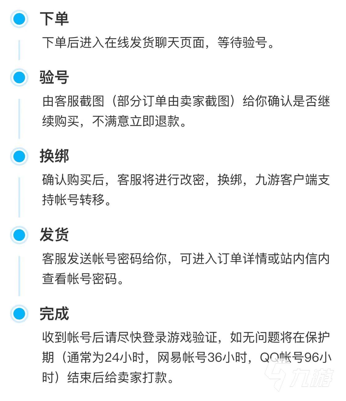交易貓平臺的購買流程,非常的簡單快捷。玩家們在看到心儀賬號的時候,就可以馬上下單了,下單后有專屬客服等待在線發(fā)貨。客服直接登錄售賣的賬號,給買家截圖賬號的具體情況,保證號源與描述的真實性,換綁后還有一段時間的保護期,結(jié)束后會給賣家打款。