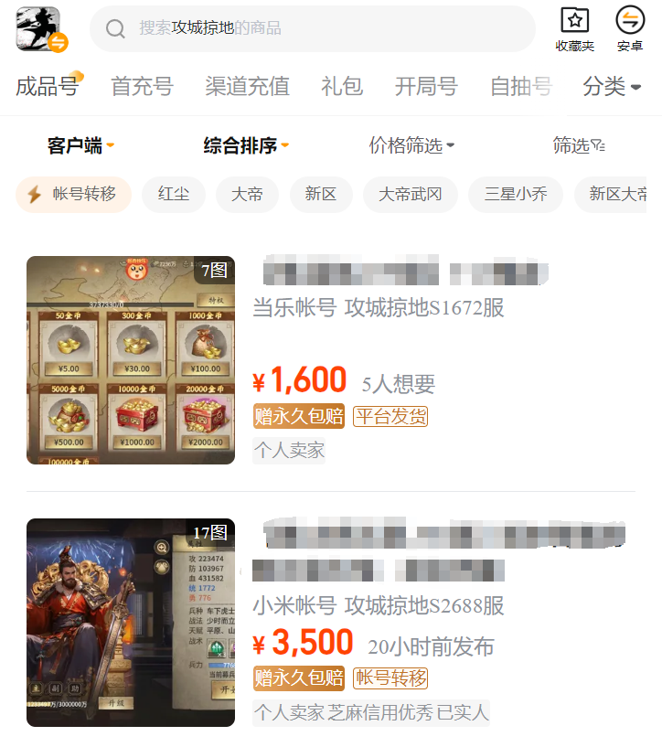 在交易貓中活躍的玩家數(shù)量其實特別多,這樣的好處就是我們完全可以物色到一個自己所喜歡的攻城略地賬號。對于賣方來說,也可以以更快的速度出售自己的賬號。畢竟賬號價值擺在那里,若是沒有賣出的話也會影響價值,買家則可買到更物美價廉的號。