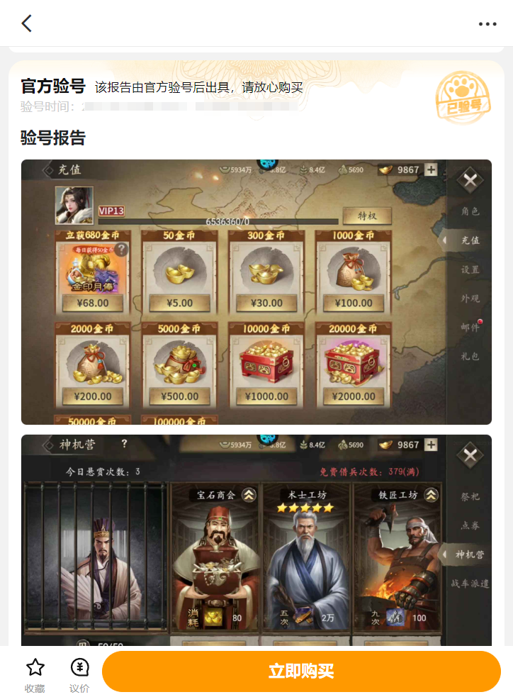 對于喜歡攻城略地的人來說,肯定需要入手一些資源或者自抽號。這樣就可以獲得更多的福利,例如抽到一些武將。那時這些賬號都能在這交易,對于追求極強戰(zhàn)力的人來說,能夠自由交易成品號,輕松助力你的夢想。