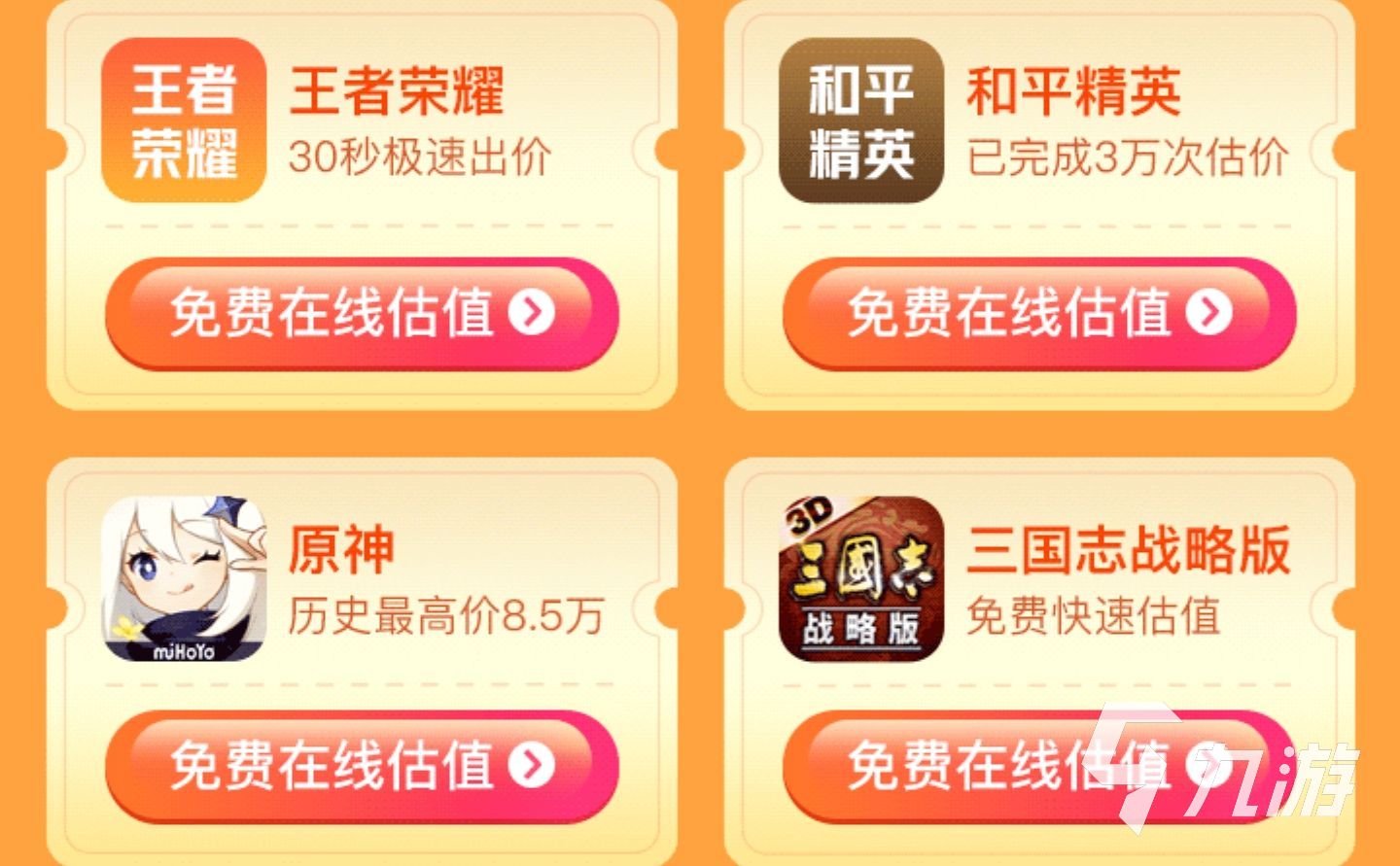 交易貓的免費估價目前已經(jīng)成為了95%以上的用戶賣號之前都會進行的一個操作,因為使用起來真的很方便,找到自己的游戲賬號專區(qū),輸入相關(guān)參數(shù)和截圖可以在30秒鐘之內(nèi)快速出個相關(guān)價格,什么王者什么吃雞還有原神這些熱門游戲全部都是免費的估值,賬號填寫起來都會有專門的游戲內(nèi)容分類,最關(guān)鍵的是對價格滿最關(guān)鍵的是對價格滿意可以直接發(fā)布在平臺售賣,平臺超高的流量運氣好的話不到十分鐘就能賣出。