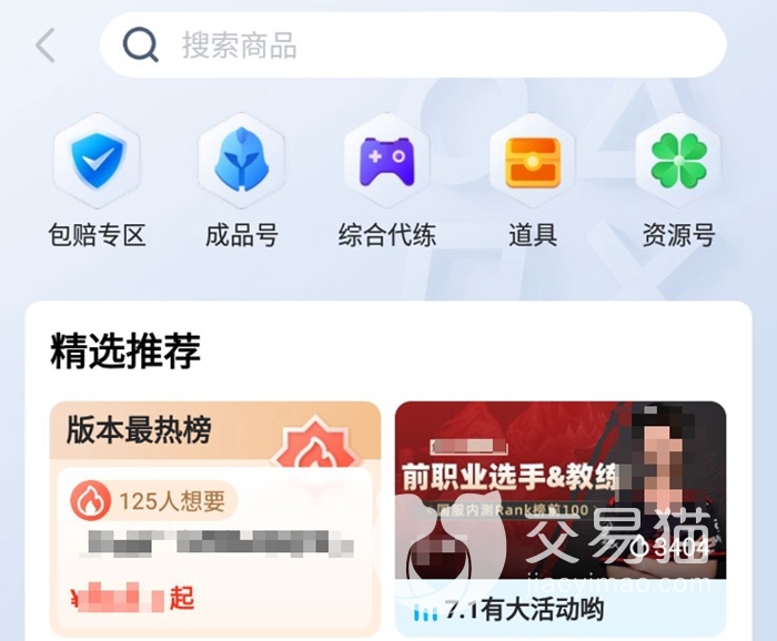 除了游戲號的交易之外,交易貓這款平臺還支持精粹的購買,精粹在游戲中可以用來兌換一部分的角色,但是現(xiàn)行版本想要獲得大量的精粹還是需要花費很多精力的,在交易貓中也可以直接購買精粹。對于一些玩家來說,定級賽或者是排位的晉級賽是非常關(guān)鍵的,如果沒有把握,使用交易貓中的代練功能讓大神幫助我們完成也是不錯的選擇。