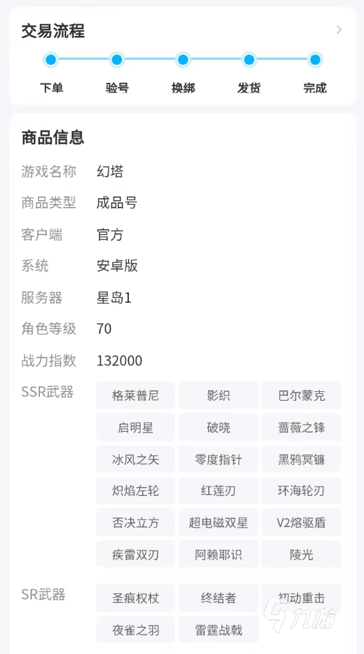 當(dāng)然在選擇購(gòu)買的商品時(shí),每一個(gè)賬號(hào)當(dāng)中包含的內(nèi)容也會(huì)存在著較大的區(qū)別,具體的差異玩家們可以直接通過(guò)商品的詳情頁(yè)來(lái)了解。在這里大家可以獲取到等級(jí)信息,并且游戲背包內(nèi)可以使用的各種高級(jí)武器也會(huì)展示出來(lái),方便每一個(gè)玩家來(lái)進(jìn)行判斷,這些透明信息也會(huì)讓各位更快找到滿意商品。