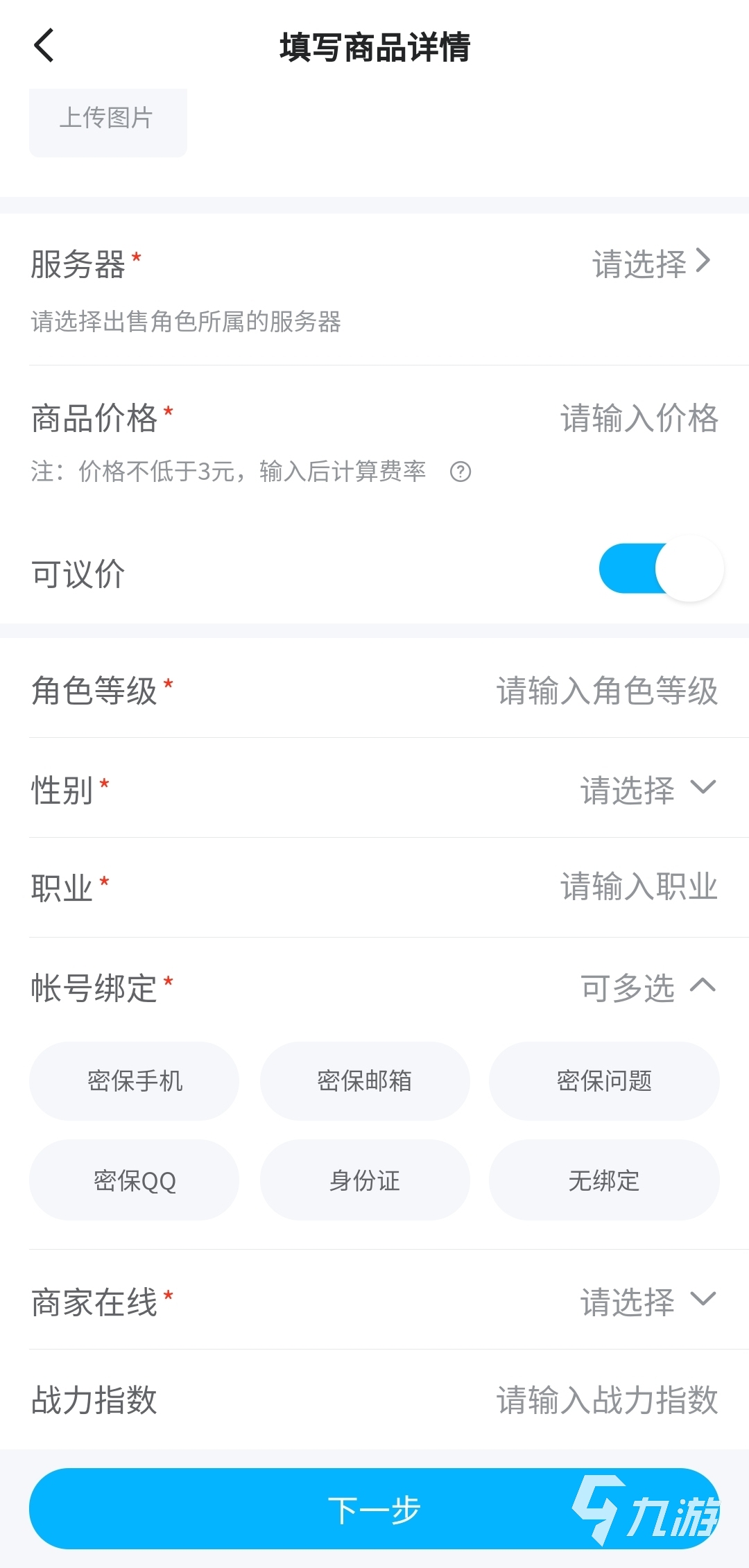 首先功能劃分明確,賣家上架賬號、查詢商品狀態(tài)、與賣家溝通交流等都特別方便。而且為了簡化上架的步驟,平臺為每個游戲設(shè)計了單獨的模板,賣家不用自己再費勁編寫介紹了,用手指點一點、打幾個字就能將賬號情況介紹清楚。