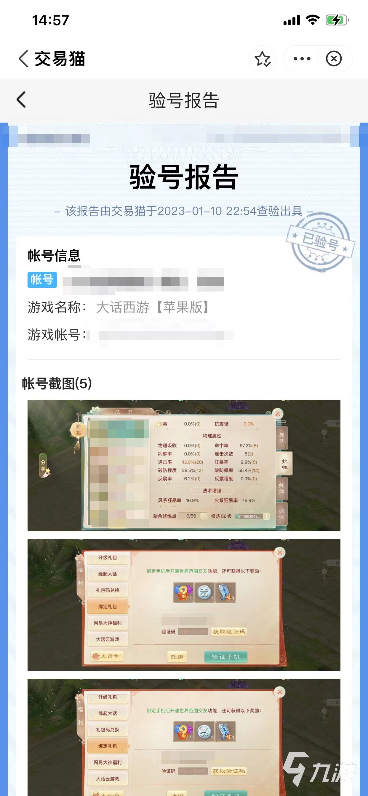 很多玩家在購買游戲賬號時,對于賬號的展示部分的真實性抱有懷疑態(tài)度,確實也存在著一些不良賣家,通過謊報賬號資源提高價格。大家可以看到交易貓中部分賬號是帶有驗號報告的,這個類型的商品都是由交易貓官方進(jìn)行專業(yè)的查驗出具,報告中呈現(xiàn)了商品id、游戲名稱與賬號id,并附有截圖展示。買家看到報告可以更清晰的了解賬號的資源并提高對賣家的信任。