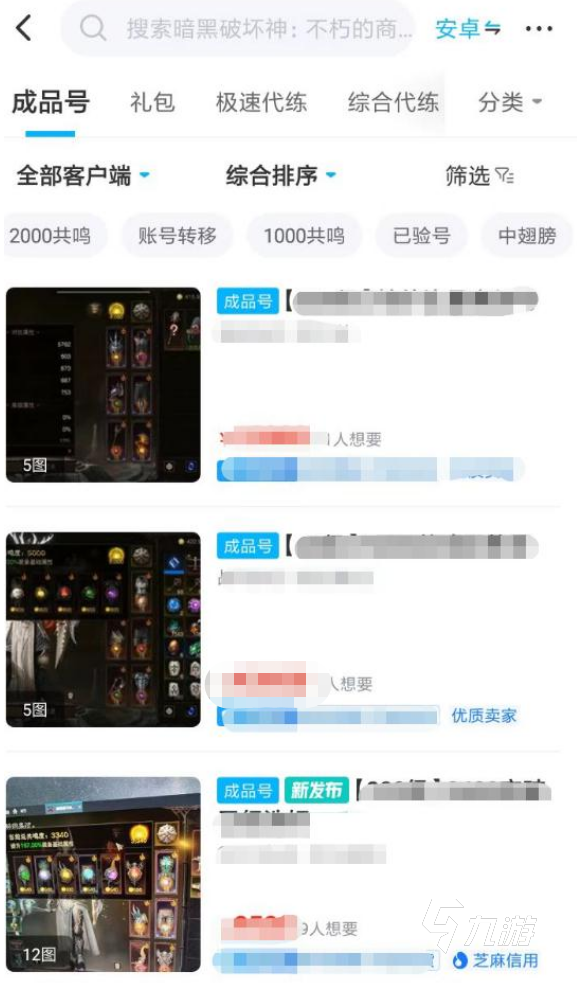 1、選擇一個(gè)準(zhǔn)備購買賬號的游戲?qū)^(qū),進(jìn)入之后就可以瀏覽到大量的賬號交易信息。而此時(shí)玩家們要做的則是去分辨哪些商品的性價(jià)比較高,哪些商品更符合自己的要求。這些細(xì)節(jié)方面的信息,大家都可以直接進(jìn)入到商品的詳情頁面當(dāng)中去查看。