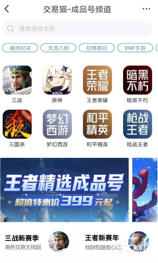 首先,可以滿足用戶們購買游戲賬號的需求,同時(shí)又能夠讓大家在一個(gè)安全靠譜的環(huán)境中去得到自己喜歡的游戲商品,目前只有交易貓app能夠幫助大家實(shí)現(xiàn)。想要購買到各種游戲賬號的玩家,可以直接進(jìn)入到交易貓app的成品號專區(qū)當(dāng)中,在這里大家可以輕松獲取到各種熱門、冷門游戲的賬號交易信息。