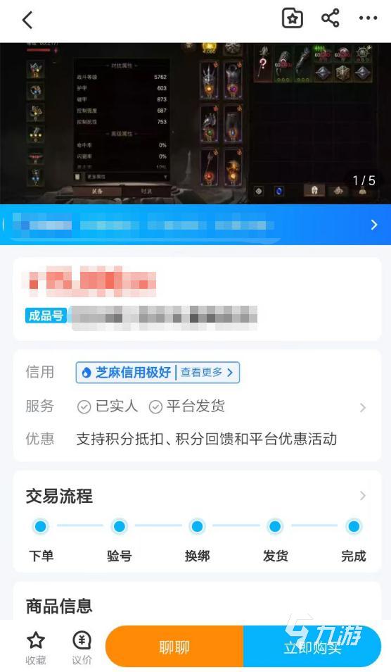 2、完善的詳情頁中,可以快速幫助玩家們了解到細(xì)節(jié)化的商品內(nèi)容。大家在瀏覽商品的過程當(dāng)中,可以輕松了解到不同游戲賬號包含了哪些角色、道具、皮膚、裝備等。玩家們可以根據(jù)這些重要信息來判斷該商品是否值得大家進(jìn)行交易。如果滿意的話,點(diǎn)擊立即購買即可獲得自己喜歡的商品。