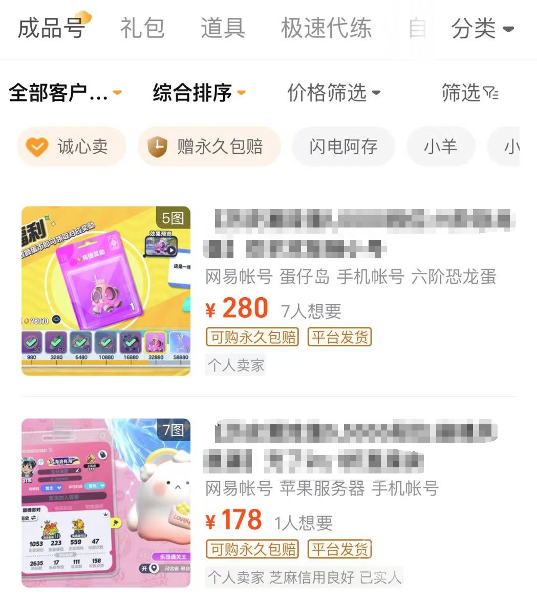 交易貓里商品豐富,除了蛋仔派對賬號以外,還能交易游戲禮包、道具呢。當游戲有限定活動而大家沒時間玩的時候,也能通過交易貓來找代練。這些商品價格實惠,性價比特別高,就拿賬號來說,從幾十元到幾百元不同價位的賬號應(yīng)有盡有,學生黨們也能消費得起。
