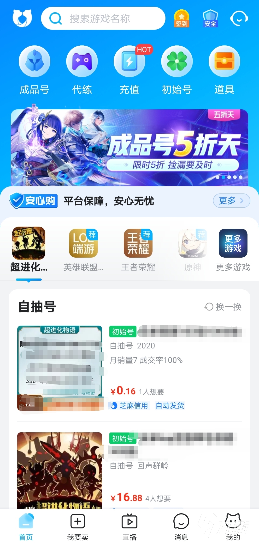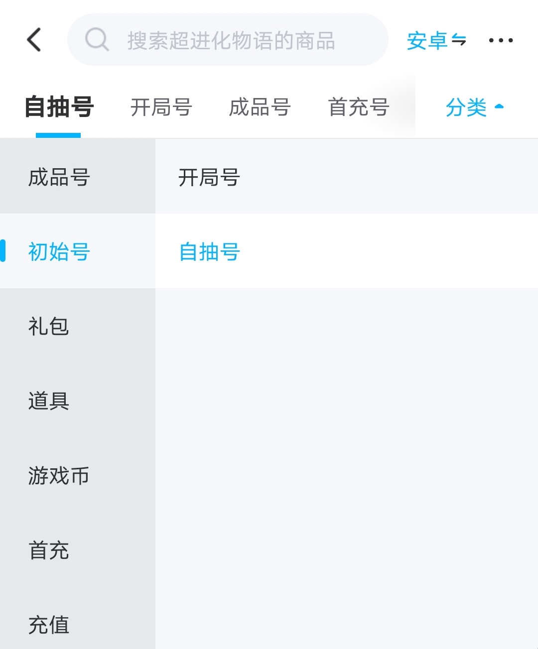 在平臺上搜索超進化物語這款手游我們能看到,游戲交易板塊下的商品是十分豐富的,種類包括自抽號、成品號、首充號、開局號、禮包,大家想買的自抽號,在交易貓上也有非常多商品待挑選,有了自抽號中的資源,玩家們在前期可以快速發(fā)育起來。