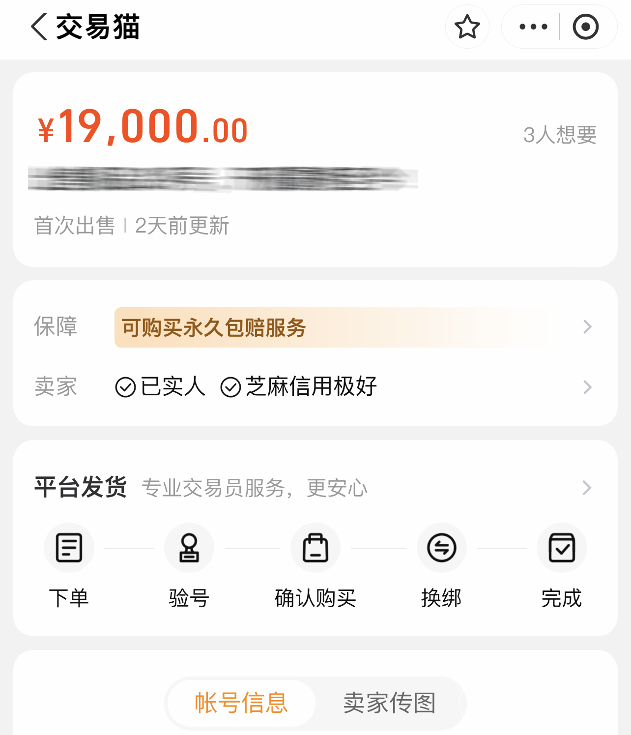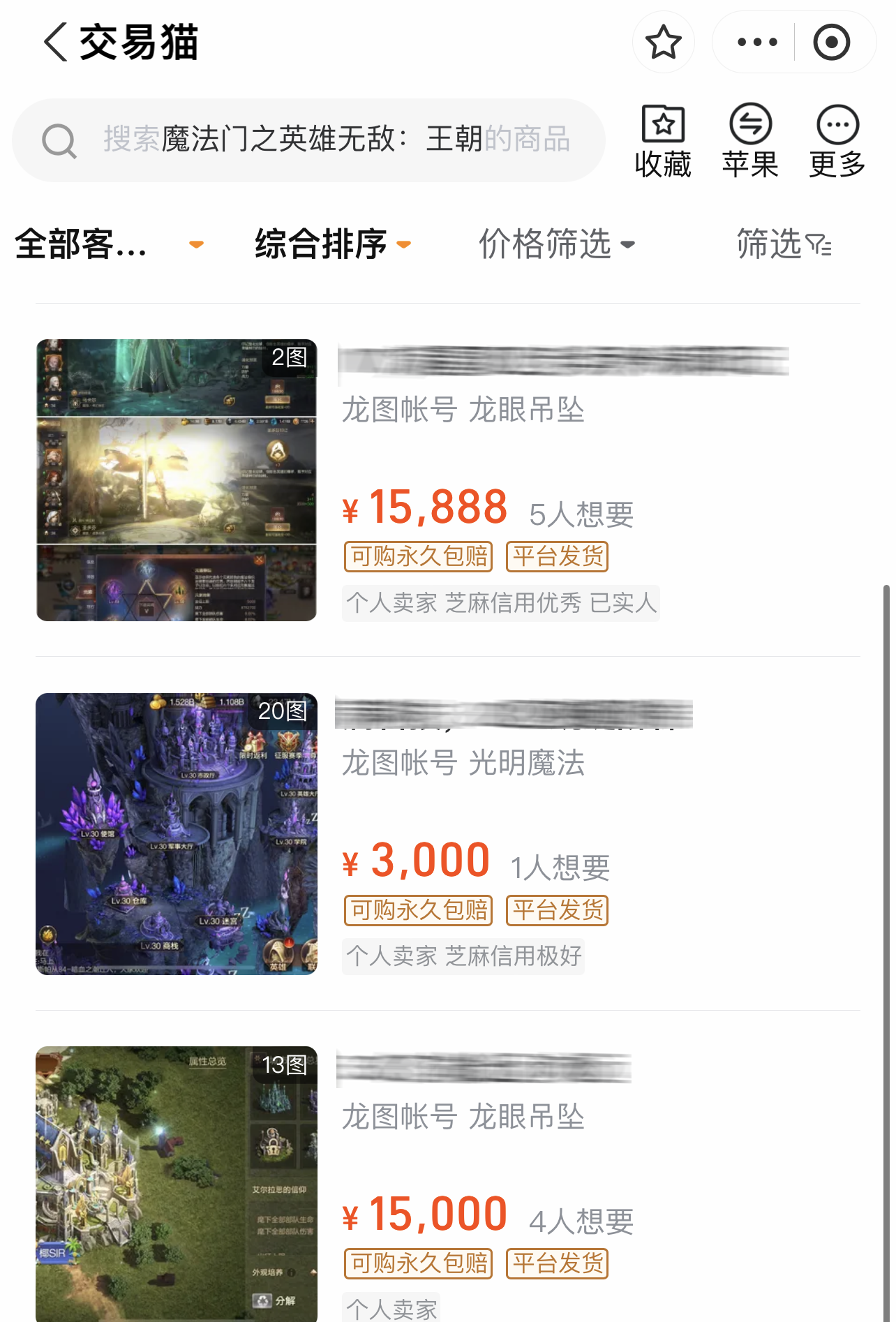 其實退坑的玩家大部分人的賬號都很好,這時候已經(jīng)成型了,擁有頂級的裝備和戰(zhàn)力,還有高等級。此刻在交易貓里就能作為這類型的賬號賣出,價格會更加合理,買家們也能直接購買頂級號,開局就能享受一刀999的傷害快感,也不用自己費力培養(yǎng)。