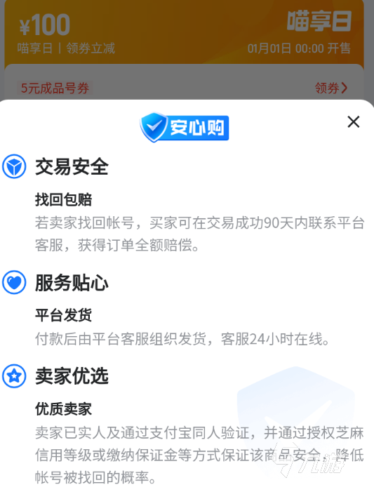 優(yōu)勢二:安心購服務(wù)提供多重保障,買號更安全。