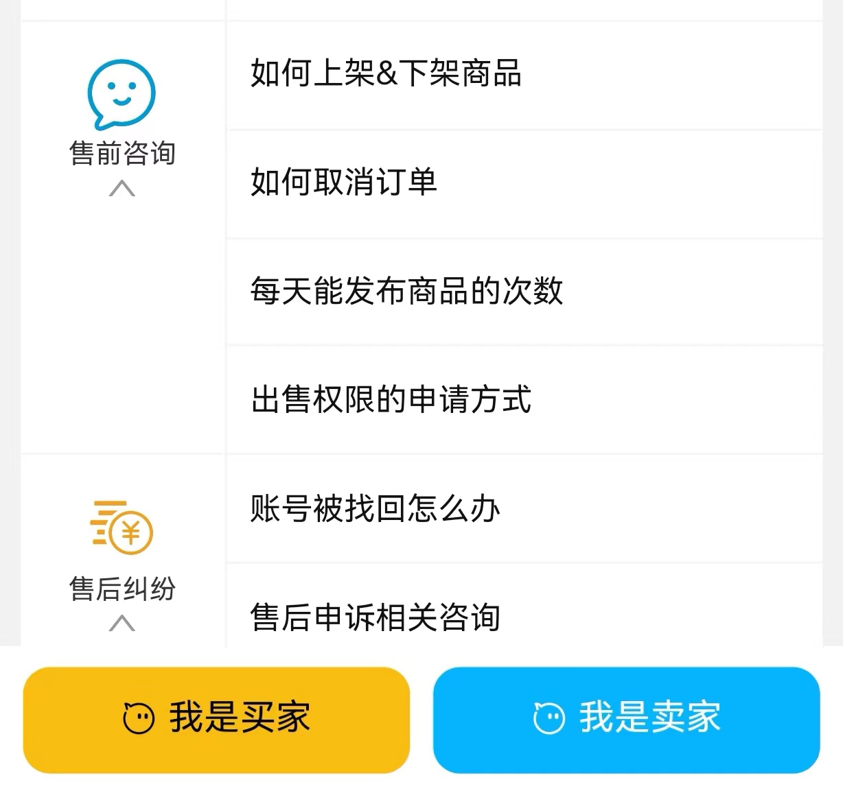 交易貓平臺(tái)內(nèi)功能完善實(shí)用性強(qiáng),買(mǎi)號(hào)賣(mài)號(hào)都可以,而且當(dāng)下網(wǎng)絡(luò)熱門(mén)游戲都有包含在內(nèi),都可以在搜索中查找,玩家有不懂的問(wèn)題也可以直接咨詢平臺(tái)客服了解,還有平臺(tái)專(zhuān)門(mén)為新人準(zhǔn)備的一些常見(jiàn)的問(wèn)題都有解答。
